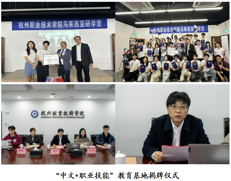 12月30日下午,学校与马来西亚北吉隆坡国际学院举行“中文+职业技能”教育基地揭牌仪式暨研学营结营仪式。马来西亚教育部课程发展司科长林毓聪、马来西亚北吉隆坡国际学院校长林小雄,以及研学营32名师生参加仪式。校长徐时清线上出席仪式,并发表致辞。