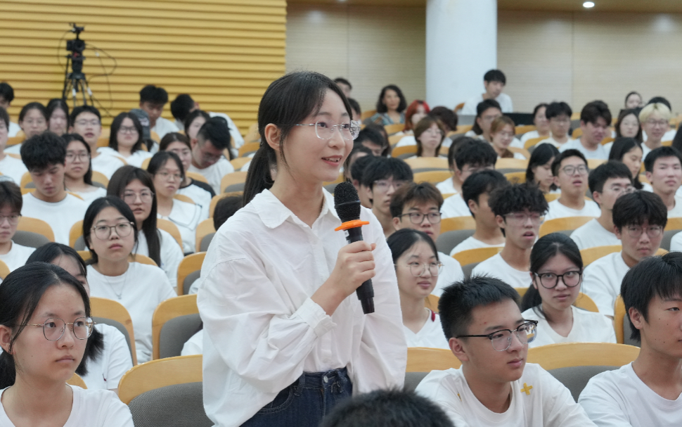 陈文岳从历史、科技、文化三个层面展开论述,引导同学们将人生理想融入中国式现代化伟大征程,找准“价值坐标”。他回顾抗战历史,强调铭记牺牲和传承英雄精神的重要性,号召同学们将抗战精神融入强国建设实践。他向同学们介绍了国家“人工智能+”行动目标与杭州人工智能创新高地建设规划,并详细阐述了学校在AI领域的布局,鼓励同学们拥抱AI浪潮。他说,文化是民族生存和发展的重要力量。他建议同学们观看《文化的力量——习近平文化思想在浙江的溯源与实践》同时引导同学们了解学校“融・善”校园文化理念,坚定文化自信。