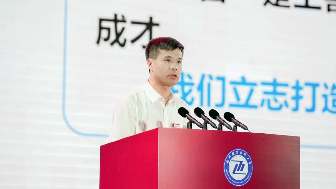 校长黄兆信以《“融”为径、“善”为灯,“杭”向未来》为题致辞,热烈欢迎5215名新生,并向家长、老师与亲友致以诚挚感谢。他强调,从“杭职院”到“杭职大”,不仅是名称之变,更是办学层次、使命担当与历史机遇的全面跃升。他围绕“融以致善”“融合创新”“善育英才”三大板块,系统阐释学校在校训精神引领下,构建“职业为根基、专业为引擎、创业为翅膀”的融合育人路径,并通过转专业机制、校企合作、校长信箱等多维度举措,为学生打造多元成长环境。致辞中,黄兆信校长还提出“向内探寻、向外锤炼、向前眺望、向上担当”的“校长之问”,引导新生思考大学方向与人生价值,并叮嘱大家注重身心安全与全面发展。最后,他寄语新生以“融”为路径、以“善”为指引,在杭职大书写灿烂青春。