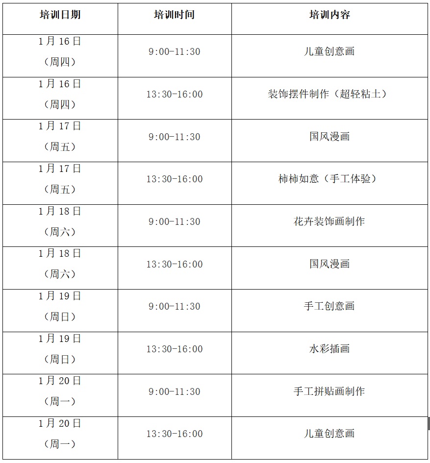 三、教学安排:1月16日至1月20日,上午:9:00-11:30,下午13:30-16:00。