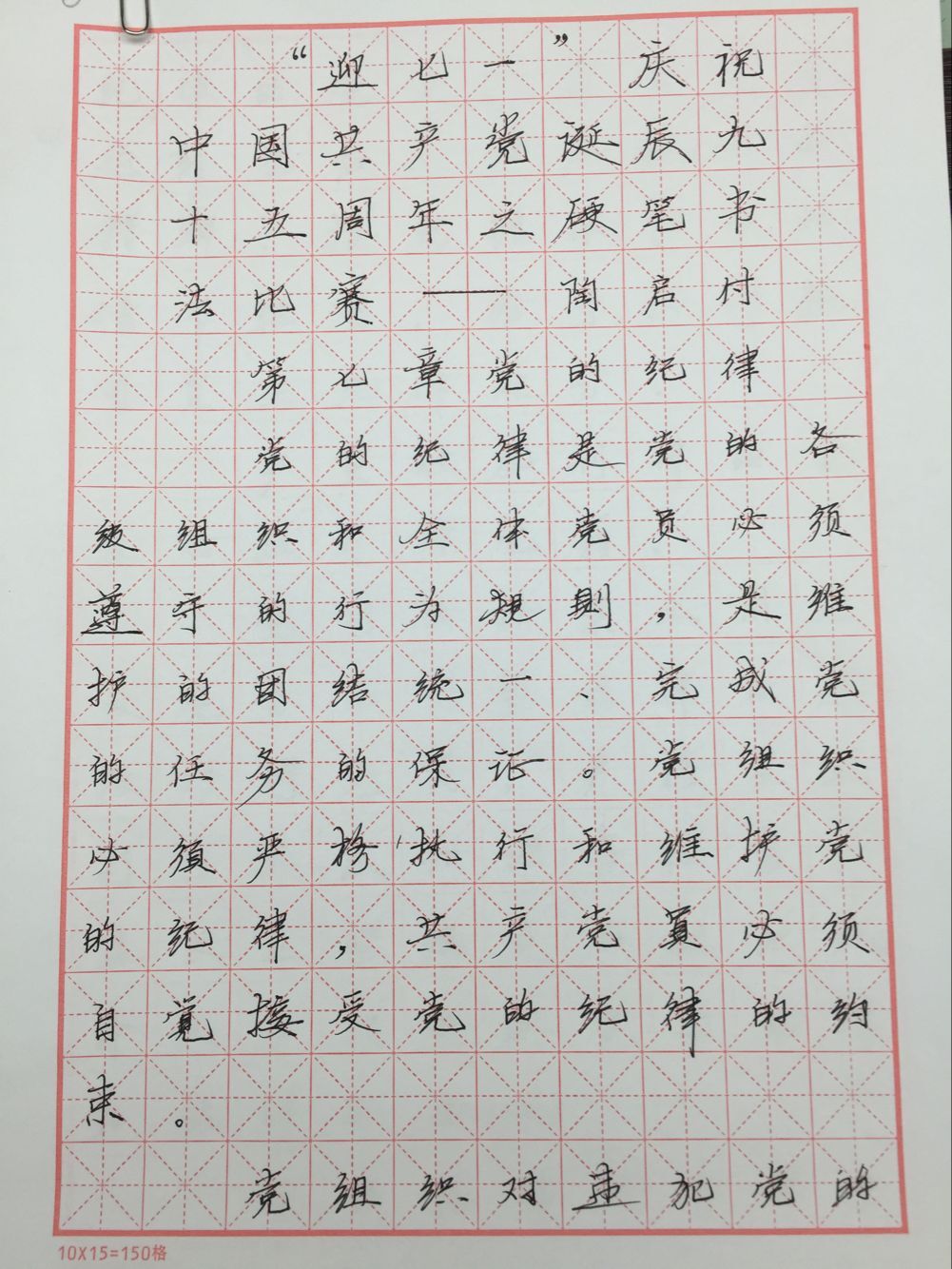 不知不觉中,2016年的上半年已接近尾声,下半年在向我们招手,而在七月,我们即将迎来中国共产党九十五岁华诞,95年风雨兼程,95年峥嵘岁月。6月24日下午,为庆祝党的伟大诞辰,动漫游戏学院第二党支部结合“两学一做”学习教育,面向学院全体党员和入党积极分子开展了“献礼党的95岁生日暨书写党章党规硬笔书法比赛”。